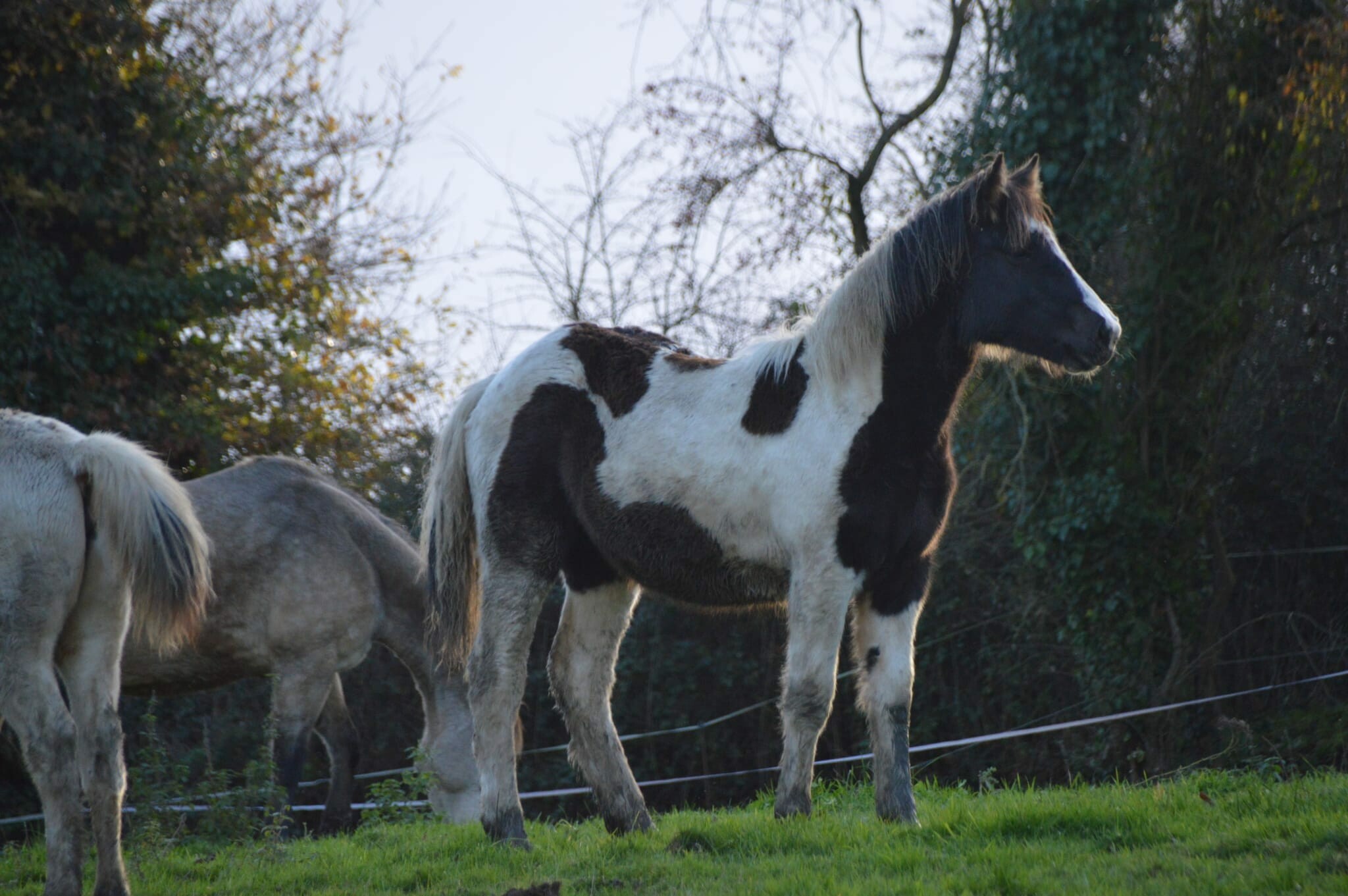 Fille de notre étalon paint horse homozygote,Flashy de Gouvix (cf dernière photo) et d'une jument de trait Suzon (cf avant dernière photo) elle sera très polyvalente et porteuse pour toutes activités de loisir ou de club, cours, compétition en vue de ses allures assez impressionnantes